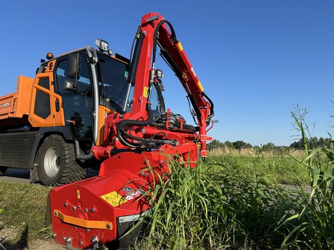 The MKT 10 and MKT 13 flail mower heads are available for right- or left-hand work. The flail shaft can be equipped with different types of flails. The mowing head can be equipped with a Tasttronic for optimal guidance even at irregular ground and counter-slopes.